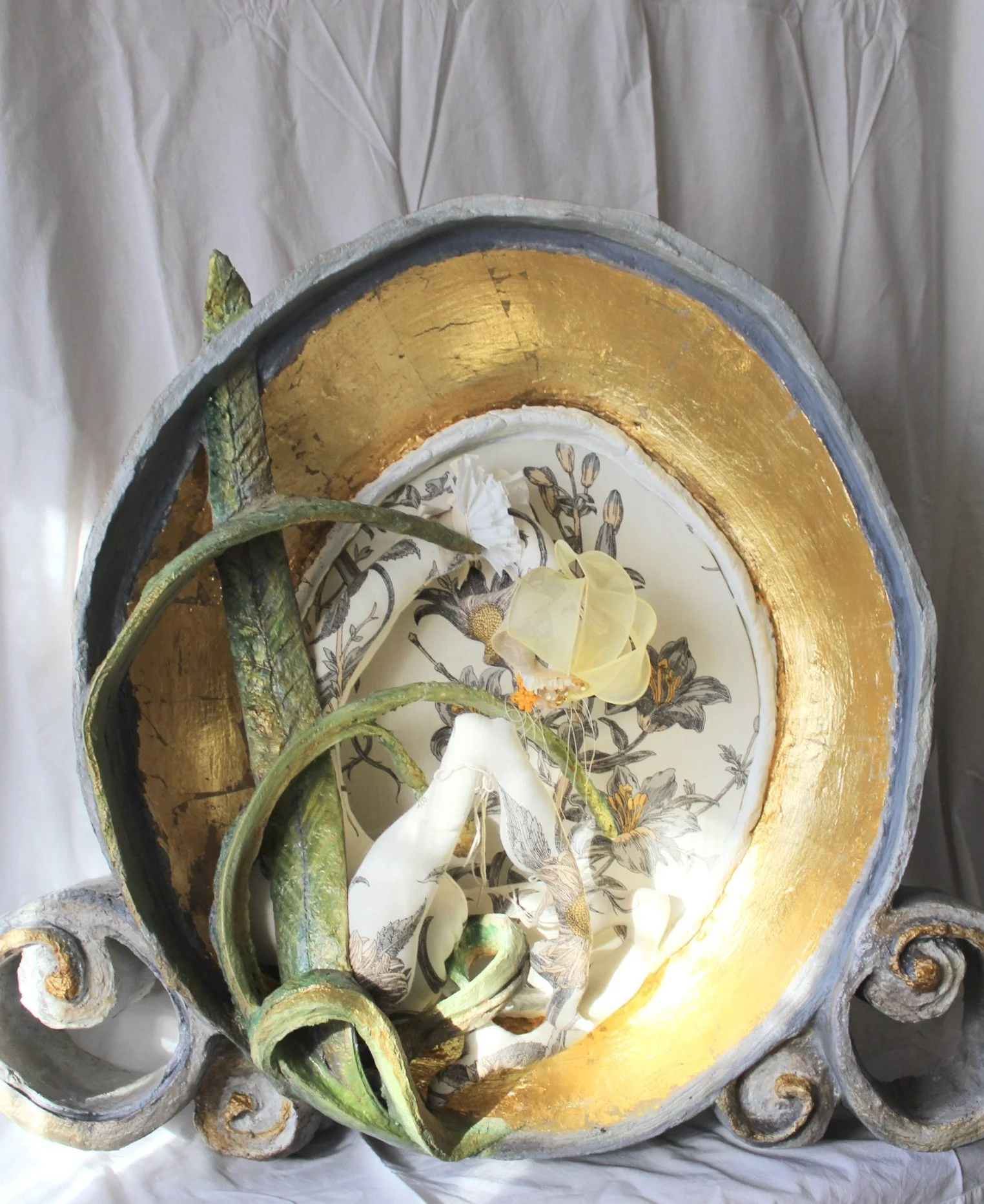 work. The creation of the 3-dimensional works reference architectural elements, fauna
